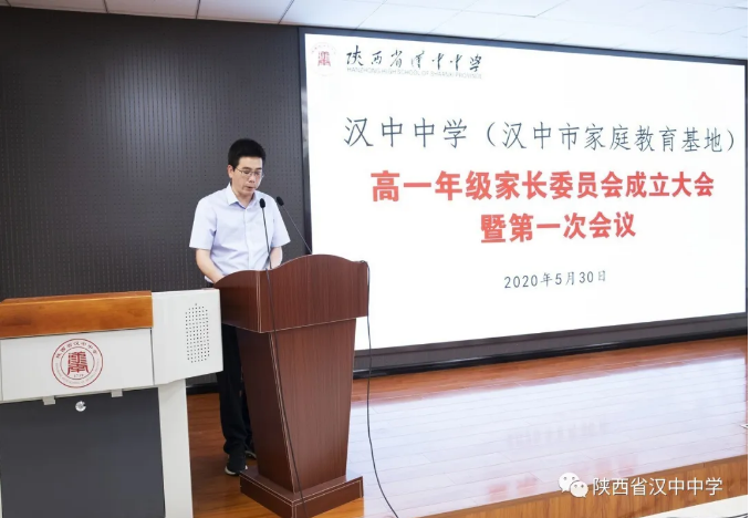 为进一步提高学校管理水平,加强家校交流与合作,完善和健全学校、社会、家庭三位一体的教育网络体系,发挥汉中中学作为汉中市“家庭教育示范基地”的作用,使家长成为学校教育与管理工作的参与者、合作者、监督者和推进者,促进家校联动、优化育人环境,汉中中学于2020年5月30日召开了高一年级家长委员会成立大会暨第一次会议。学校领导,德育处主任,高一年级部正副主任、教师代表和40多名家长参加了会议,会议由德育处郑涌涛老师主持。