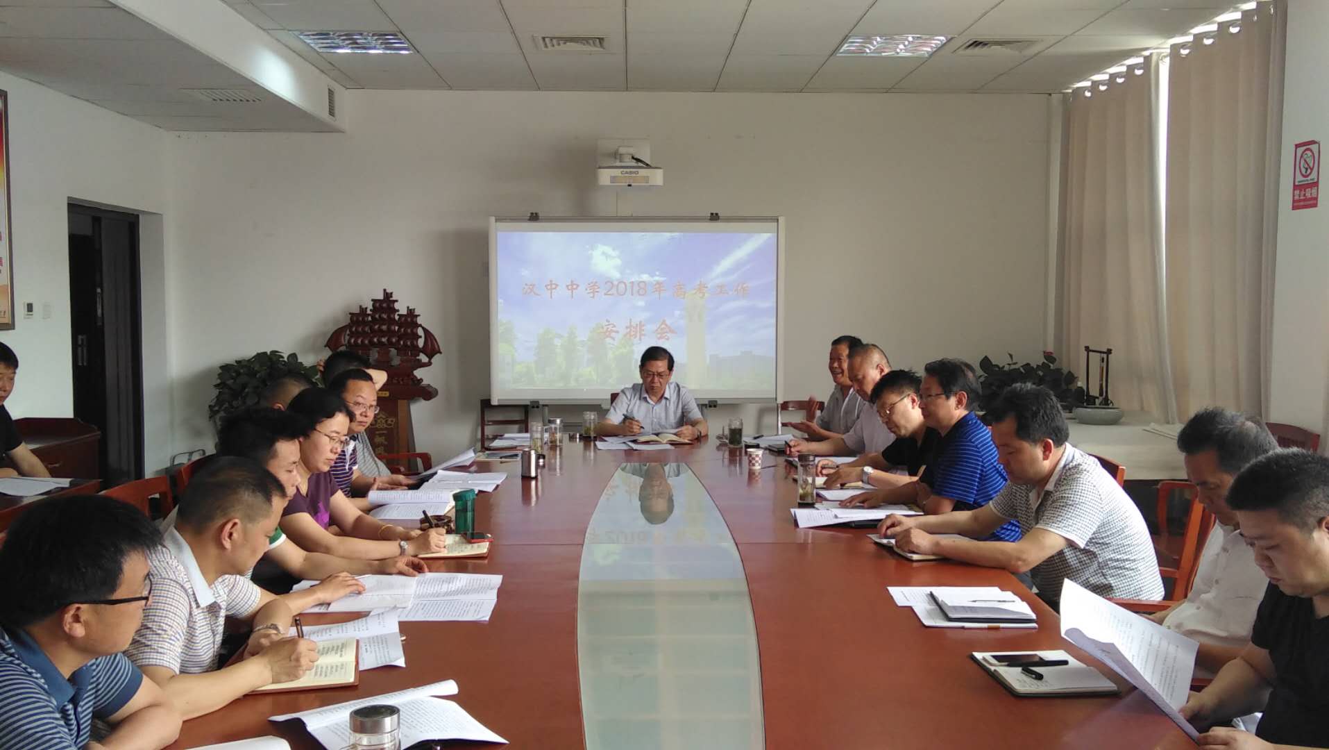 5月18日下午,我校召开了2018年高考工作安排会,学校中层及以上领导、年级正副主任和相关工作人员30多人参加。