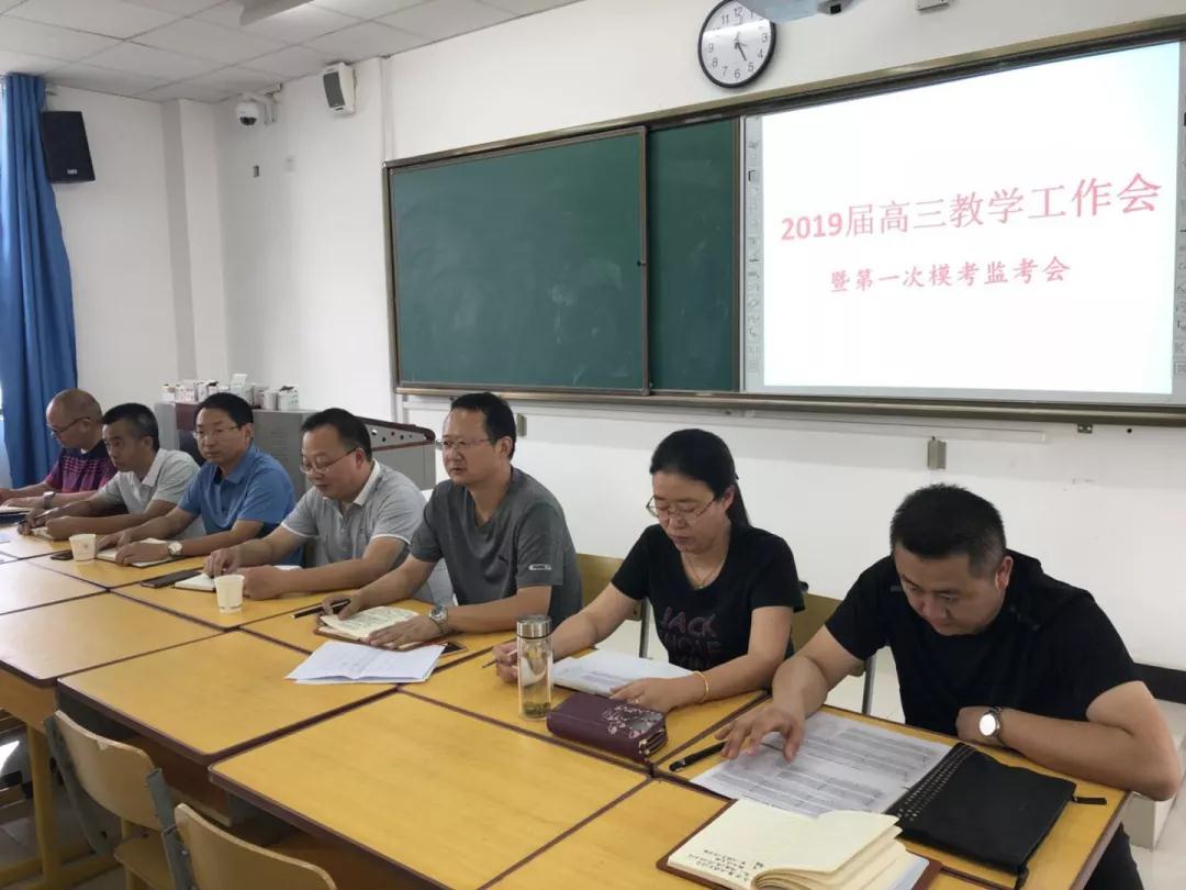 8月29日下午,汉中中学2019届高三年级召开教学工作会暨第一次模考监考会,会议由年级部副主任郑涌涛主持,副校长李富泉、教务处主任韩富万、德育处主任王建华,年级部领导及高三年级全体教师参加了会议。