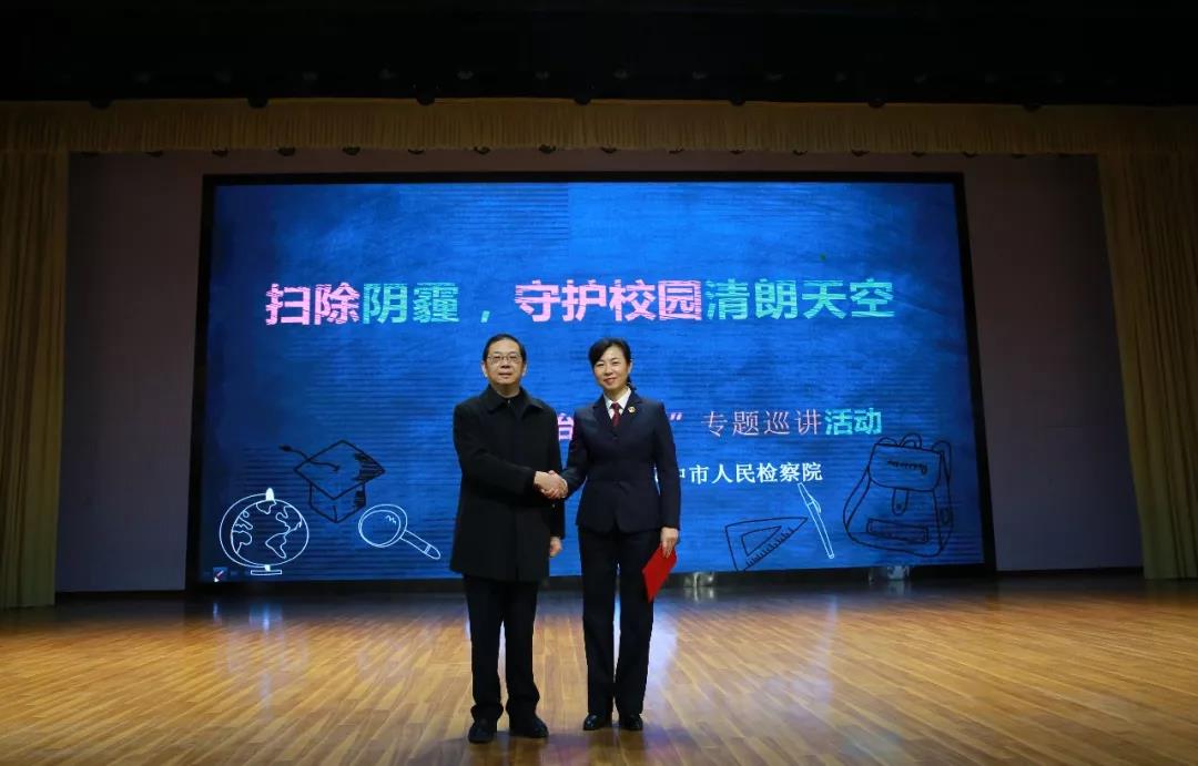 活动现场,我校校长文庆华同志为丁鹏敏检察长颁发了汉中中学法治副校长聘书。丁鹏敏代表检察机关向我校学生赠送了法治书籍。